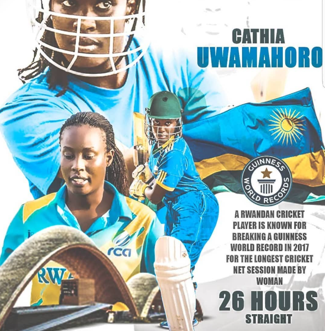 Muri 2017, umukinnyi wa cricket w’umugore Cathia Uwamahoro yanditse izina rye mu bitabo bya Guinness ubwo yatsindaga agahigo ko gukina net session amasaha 26 atavunitse, ashimangira uruhare rw’abagore mu mikino ndetse no kwerekana ko ubushobozi bwabo.