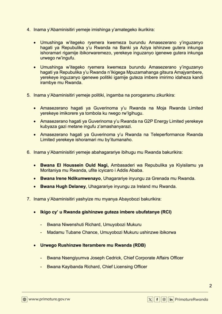 Inama y’Abaminisitiri yashyize mu myanya Abayobozi bakurikira: