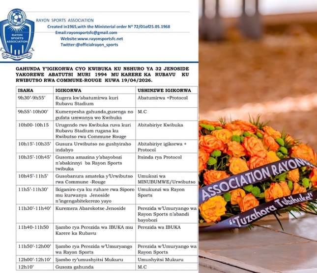 Iki gikorwa cyo kwibuka cyateguwe na Association Rayon Sports bikaba biteganyijwe ko kigomba kurangira saa sita z’amanywa ubundi bakajya kwitegura umukino wa Shampiyona saa cyenda bafitanye na Rutsiro kuri stade Umuganda i Rubavu.